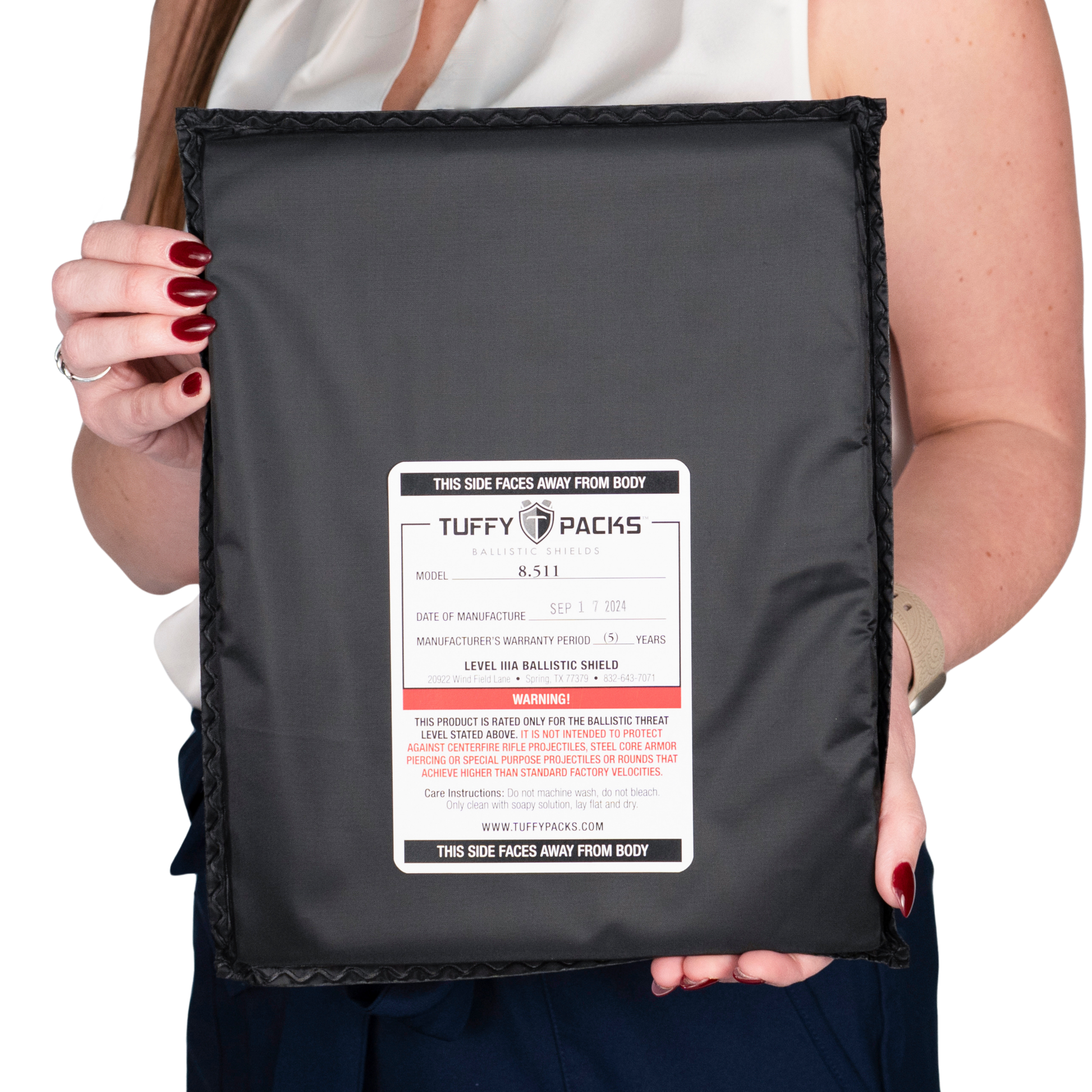 TuffyPacks ballistic shields are approximately ½-inch thick.